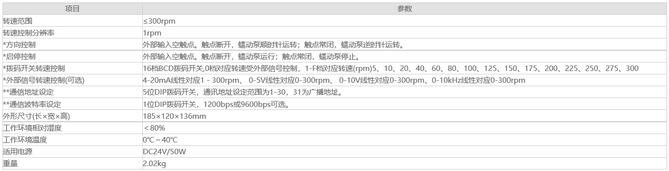 說明:*項目為撥碼開關(guān)結(jié)合外部信號控制方式所特有