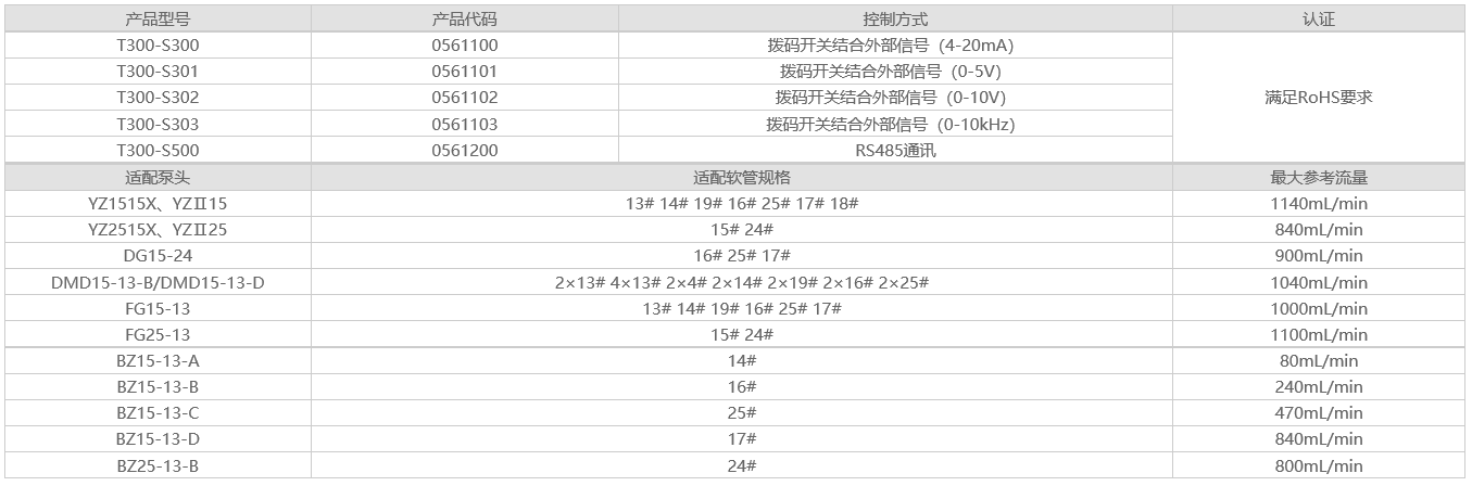 T300系列產(chǎn)品是主要針對配套客戶設(shè)計研發(fā)的蠕動泵驅(qū)動器,最高轉(zhuǎn)速為300rpm,轉(zhuǎn)速可調(diào)節(jié),適配多種泵頭,最大能提供1140mL/min的參考流量,可采用底板和面板兩種安裝方式,直流24V供電,體積小,結(jié)構(gòu)緊湊,適合配套使用。