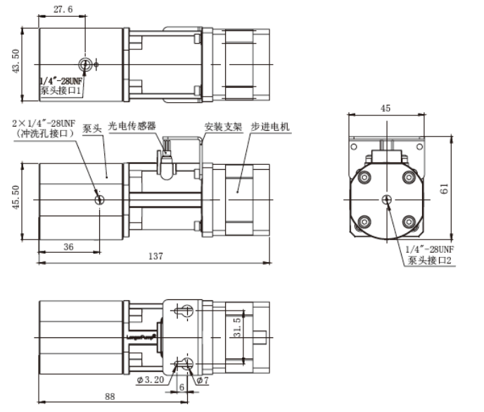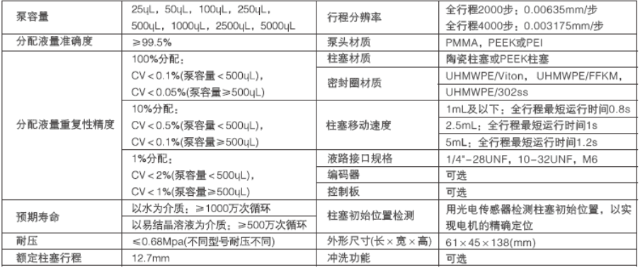 可選沖洗功能,以實現(xiàn)易結(jié)晶溶液的長壽命傳輸??膳渲秒姍C編碼器,以實現(xiàn)電機位置的實時監(jiān)控??膳渲弥每刂破鳎钥s短集成系統(tǒng)開發(fā)周期。