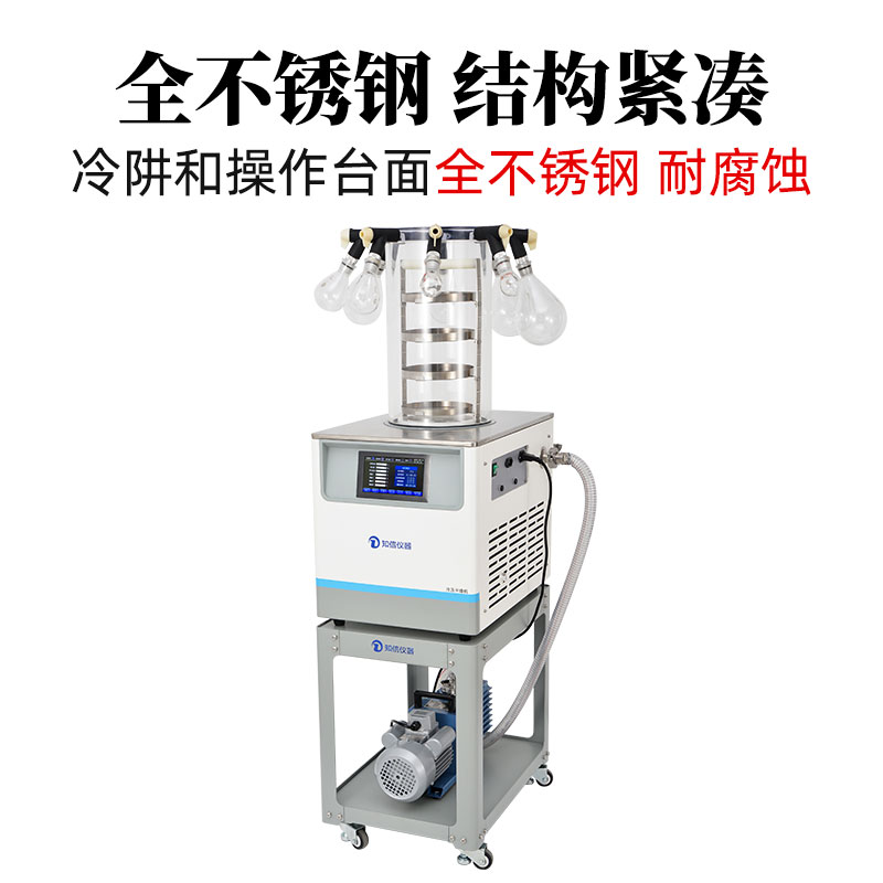冷凍干燥機(jī)是將含水物品預(yù)先凍結(jié),然后使其水分在真空狀態(tài)下升華而獲得干燥物品的一種技術(shù)方法。經(jīng)冷凍干燥后物品理化性質(zhì)、生物特性基本不變,易于長期保存,復(fù)水后物品能迅速恢復(fù)到凍干前的形態(tài),并且能保持其原有的生化特性。因此,冷凍干燥機(jī)在化工、食品、醫(yī)藥、生物等制品的制備和檢測領(lǐng)域得到廣泛應(yīng)用。
