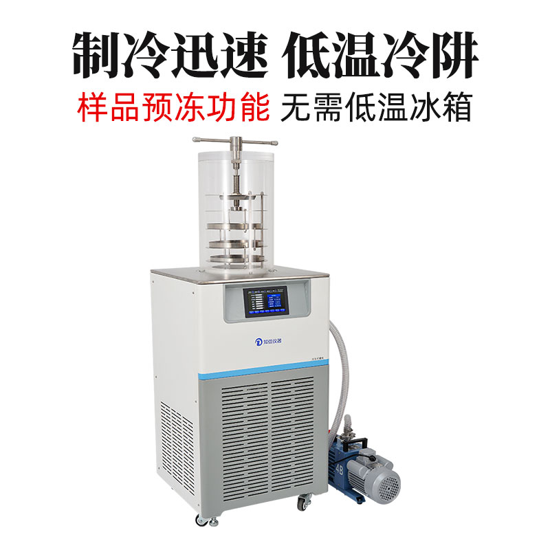 冷凍干燥機(jī)是將含水物品預(yù)先凍結(jié),然后使其水分在真空狀態(tài)下升華而獲得干燥物品的一種技術(shù)方法。經(jīng)冷凍干燥后物品理化性質(zhì)、生物特性基本不變,易于長期保存,復(fù)水后物品能迅速恢復(fù)到凍干前的形態(tài),并且能保持其原有的生化特性。因此,冷凍干燥機(jī)在化工、食品、醫(yī)藥、生物等制品的制備和檢測領(lǐng)域得到廣泛應(yīng)用。