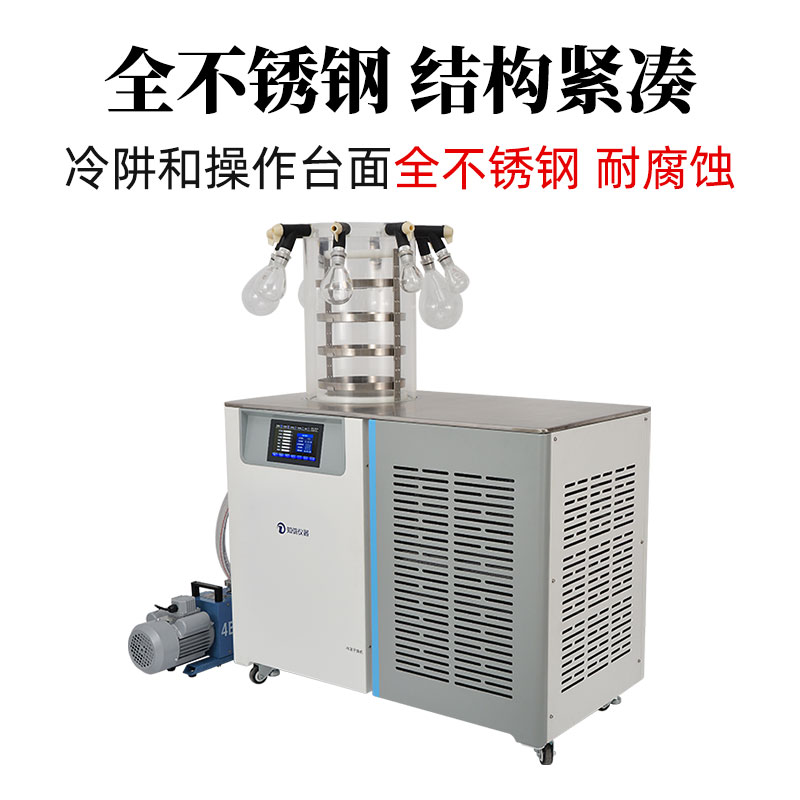 冷凍干燥機(jī)是將含水物品預(yù)先凍結(jié),然后使其水分在真空狀態(tài)下升華而獲得干燥物品的一種技術(shù)方法。經(jīng)冷凍干燥后物品理化性質(zhì)、生物特性基本不變,易于長期保存,復(fù)水后物品能迅速恢復(fù)到凍干前的形態(tài),并且能保持其原有的生化特性。因此,冷凍干燥機(jī)在化工、食品、醫(yī)藥、生物等制品的制備和檢測領(lǐng)域得到廣泛應(yīng)用。