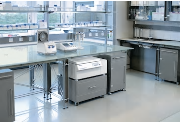 › 固定在滑輪柜上的離心機(jī)適合放置在90 cm的標(biāo)準(zhǔn)實(shí)驗(yàn)室桌面下.