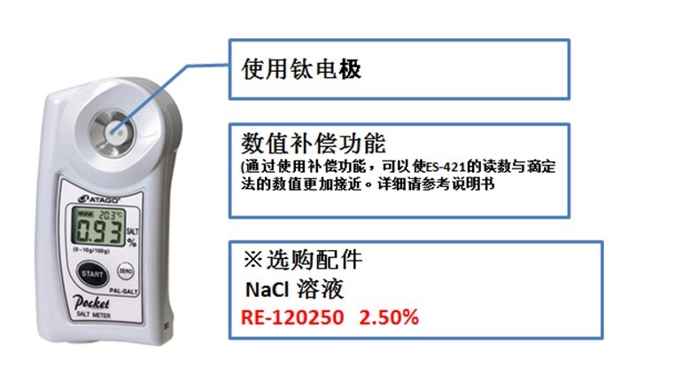 PAL-SALT Mohr 迷你數(shù)顯鹽度計(jì),又稱(chēng)為腌菜汁鹽度計(jì),醬菜汁含鹽量較高需要稀釋?zhuān)琍AL-SALT Mohr鹽度計(jì)是一款環(huán)保型、高性?xún)r(jià)比的鹽度測(cè)量工具。