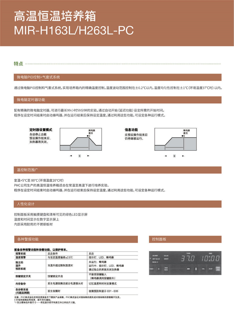 微電腦定時(shí)器功能;配有精確的微電腦定時(shí)器,可進(jìn)行最長(zhǎng)99小時(shí)59分鐘的實(shí)驗(yàn)。通過(guò)自動(dòng)開(kāi)始(延遲功能)設(shè)定所需的開(kāi)始時(shí)間。程序在設(shè)定時(shí)間結(jié)束時(shí)啟動(dòng)蜂鳴器,并在運(yùn)行結(jié)束后保持設(shè)定溫度通過(guò)利用這些功能,可設(shè)定各種運(yùn)行模式定時(shí)器設(shè)置模式 蜂鳴器 信息功能 蜂鳴器 自動(dòng)停止功能 激活 在預(yù)設(shè)操作結(jié)束后 激活 預(yù)設(shè)操作結(jié)束后 仍將繼續(xù)運(yùn)行。 加熱器將關(guān)閉。
