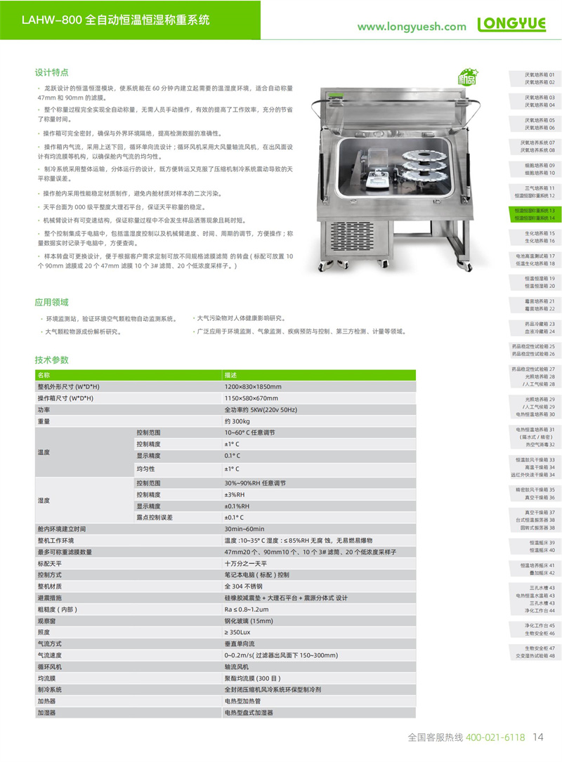 · 龍躍設(shè)計(jì)的恒溫恒濕模塊,使系統(tǒng)能在 60 分鐘內(nèi)建立起需要的溫濕度環(huán)境,適合自動(dòng)稱量47mm 和 90mm 的濾膜。