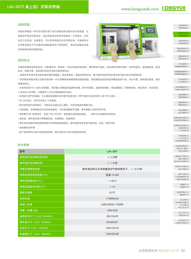 厭氧培養(yǎng)箱是一種可在無氧環(huán)境下進(jìn)行細(xì)菌培養(yǎng)及操作的專用裝置,它能提供嚴(yán)格的厭氧狀態(tài)、恒定的溫度培養(yǎng)條件和具有一個系統(tǒng)化、科學(xué)化的工作區(qū)域,本裝置內(nèi),可以培養(yǎng)很難生長的厭氧生物,又能避免以往厭氧生物在大氣中操作時接觸氧而死亡的危險性, 因此本裝置是厭氧生物檢測科研的理想設(shè)備。
