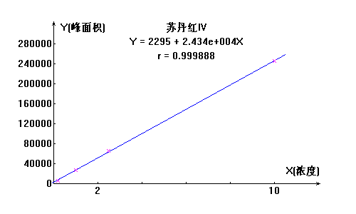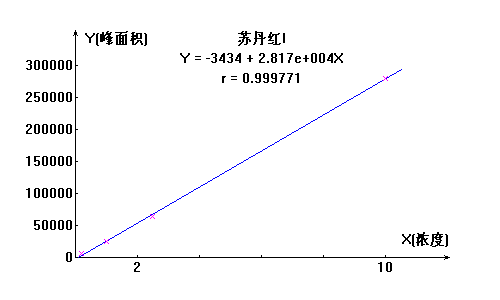 蘇丹紅I號工作曲線見下圖,線性相關(guān)系數(shù):0.9997
