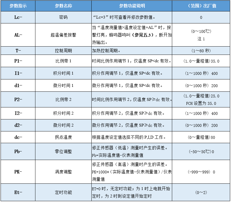 注意:為使控制達到最佳效果,可適當修改P(修改范圍一般在“30 ~40”之間),但通常情況下無須修改,直接使用出廠參數(shù)即可。